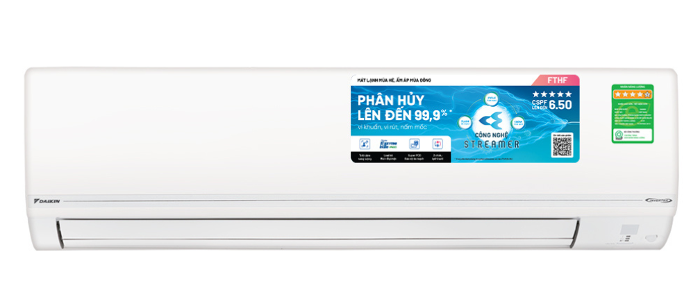 Điều hòa Daikin sử dụng công nghệ Inverter giúp máy vận hành bền bỉ, nhanh chóng và ổn định. Công nghệ này điều chỉnh tốc độ quay động cơ máy nén phù hợp với công suất làm lạnh, giúp tiết kiệm năng lượng đáng kể, được Bộ Công Thương đánh giá đạt 5 sao tiết kiệm điện. Đồng thời, dàn nóng và dàn lạnh cải tiến giảm độ ồn, mang lại trải nghiệm sử dụng êm ái và nhiệt độ ổn định.