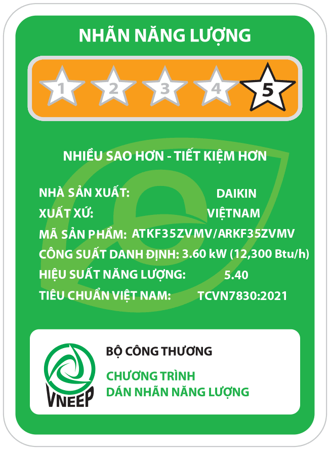Điều hòa Daikin FTKF35ZVMV sử dụng công nghệ Inverter giúp tiết kiệm điện năng đáng kể. Điện năng tiêu thụ chỉ khoảng 0.82 kWh sau 8 giờ vận hành liên tục, tương đương chi phí vận hành rất thấp mỗi đêm. Công nghệ này còn giúp máy hoạt động êm ái, tạo không gian yên tĩnh lý tưởng.